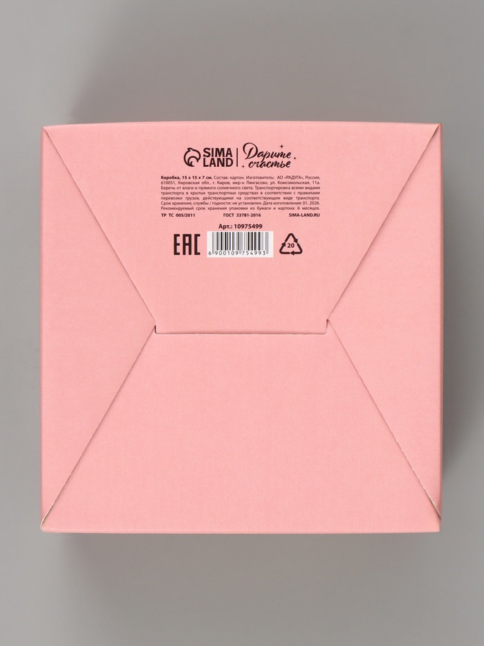 Коробка складная «Самой нежной», 15 х 15 х 7 см