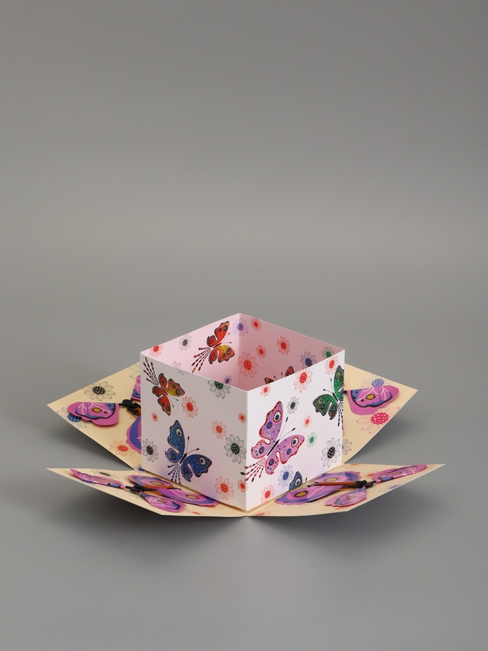 Коробка-сюрприз с вылетающими бабочками — это не просто упаковка, а способ подарить эмоции. Она усиливает впечатление от подарка и делает момент его вручения ярким, нежным и по-настоящему незабываемым.