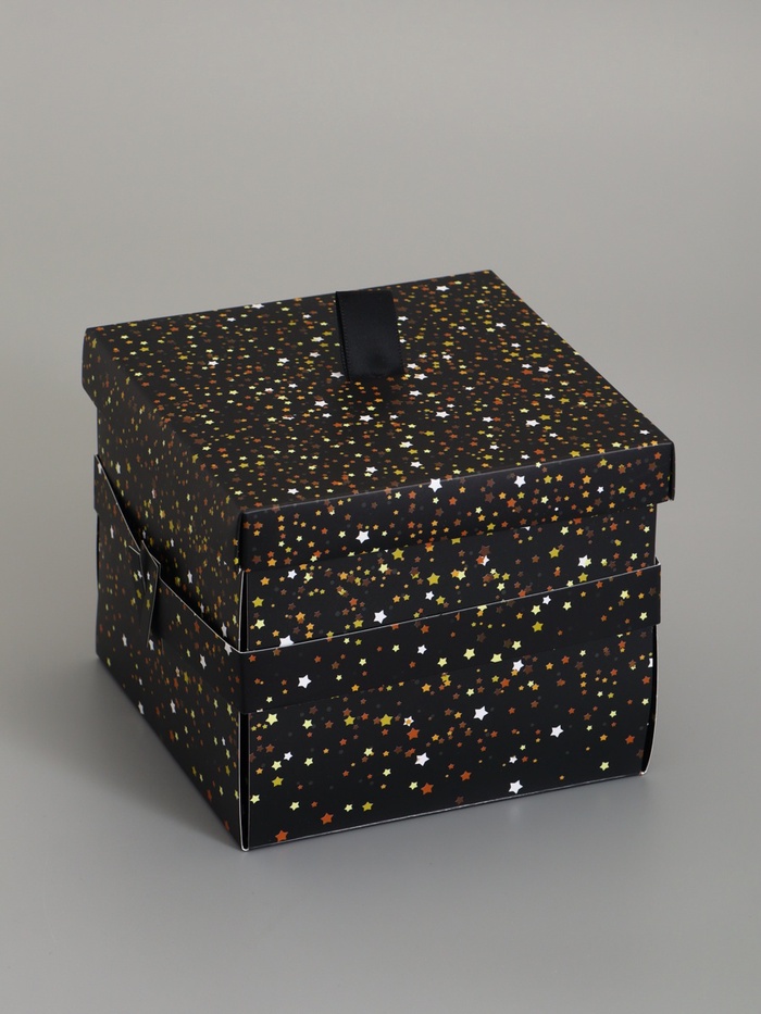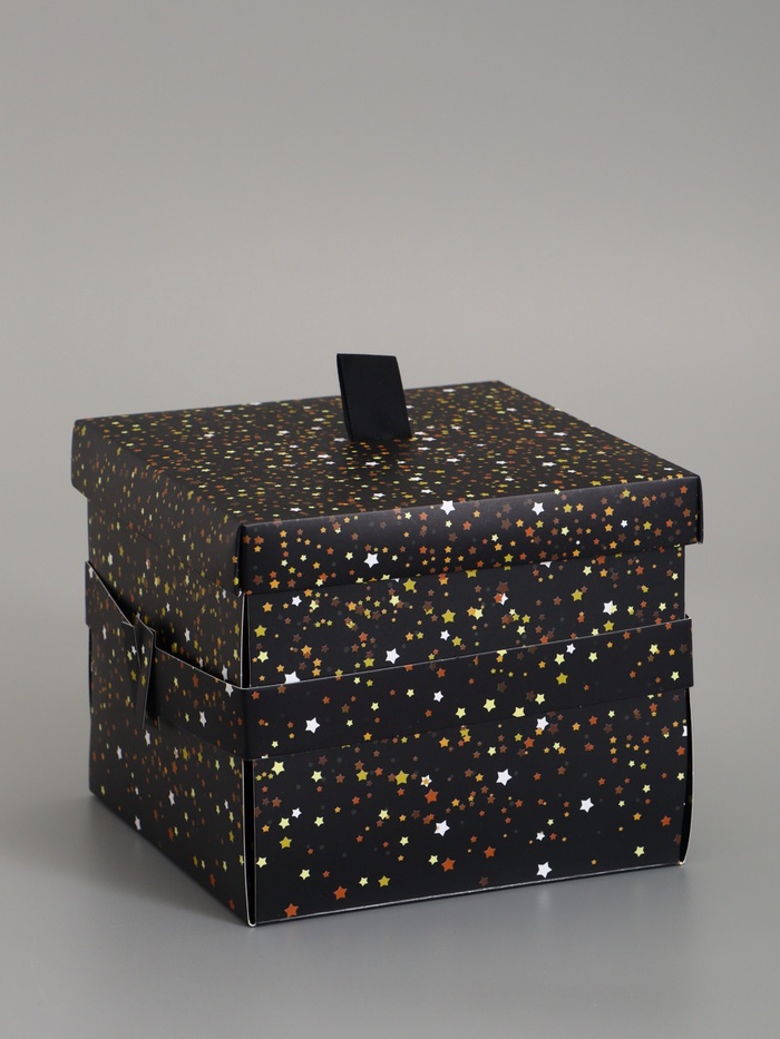 Чёрная коробка-сюрприз «Бабочки, Звёзды» с вылетающими бабочками (15×14.8×12.5 см) – это эффектная подарочная упаковка, которая превращает обычный подарок в настоящее событие. При открытии крышки из коробки вылетают лёгкие бабочки, создавая яркий визуальный эффект и вызывая искренние эмоции удивления и радости. Такой формат подачи делает момент вручения по-настоящему запоминающимся.