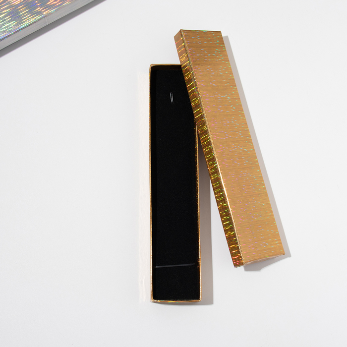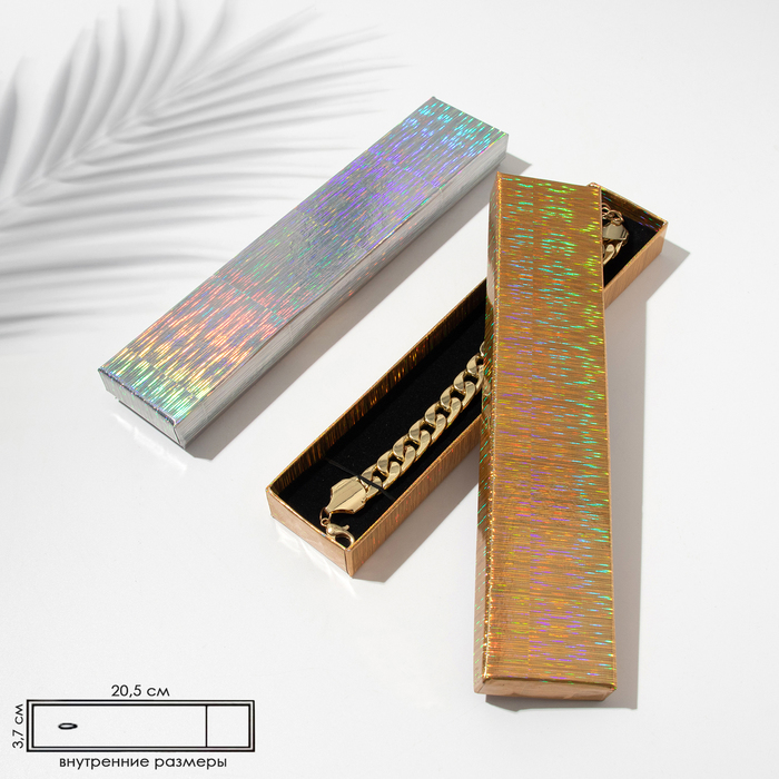 Подарочная коробочка «Голография» — это идеальное сочетание стиля и инновационного дизайна. Размер 21×4 см подходит для упаковки браслетов, цепочек и часов, придавая вашему подарку роскошную и яркую презентацию. В коробочке используется уникальная голографическая поверхность, которая меняет свои оттенки в зависимости от угла освещения, создавая эффект динамичного сверкания. Цвет МИКС добавляет дополнительную оригинальность и позволяет выбрать подходящее оформление для любого украшения.