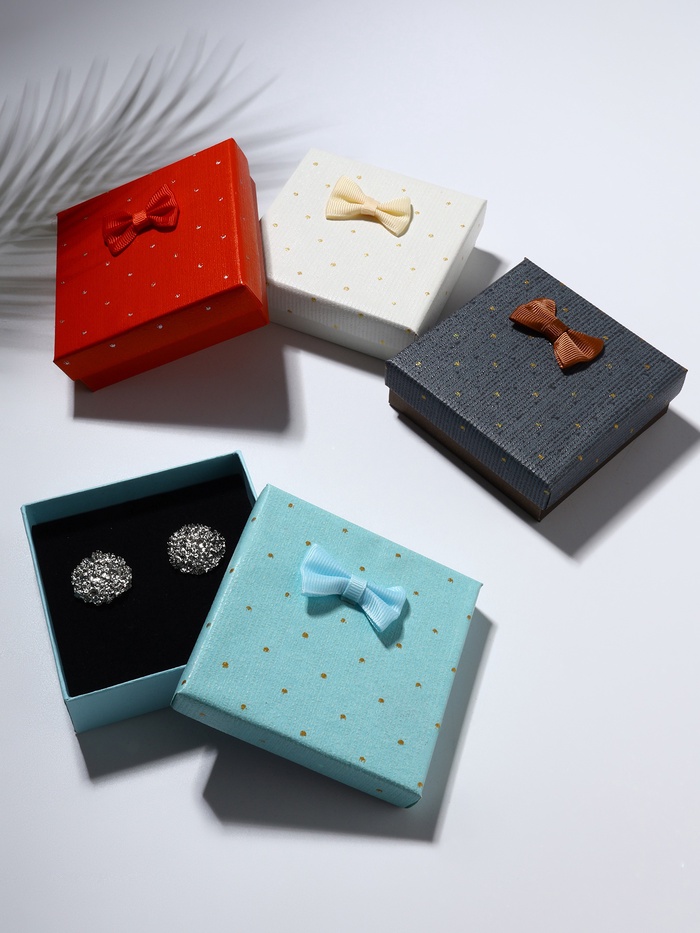 - Уникальность: картонная коробка украшена необычным рисунком и дополнительным бантом, что подчеркивает индивидуальность подарка и ваше внимание к деталям.