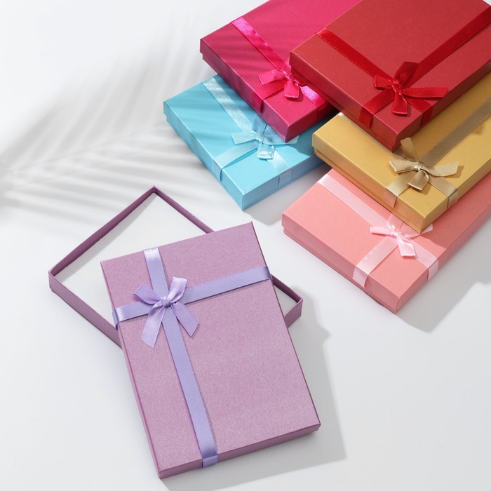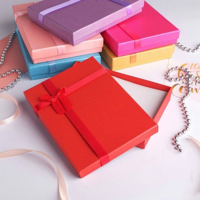С нашими прекрасными коробочками любой подарок станет еще лучше и ярче. Футляр выполнен из прочного плотного картона. Оптимальный размер коробки 13*18см позволяет разместить разнообразные виды ювелирных изделий – от сережек до колье. Внутри каждой коробочки с крышкой есть Ббелая бархатная подложка. С помощью специальных прорезей на подушечке можно аккуратно разместить и зафиксировать цепочки, гвоздики и перстни. А если убрать подложку, упаковка подойдет даже для часов с мягким плоским ремешком или на цепи.