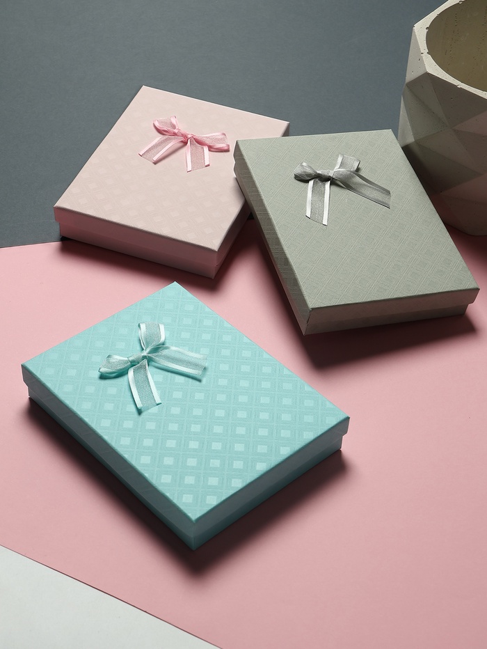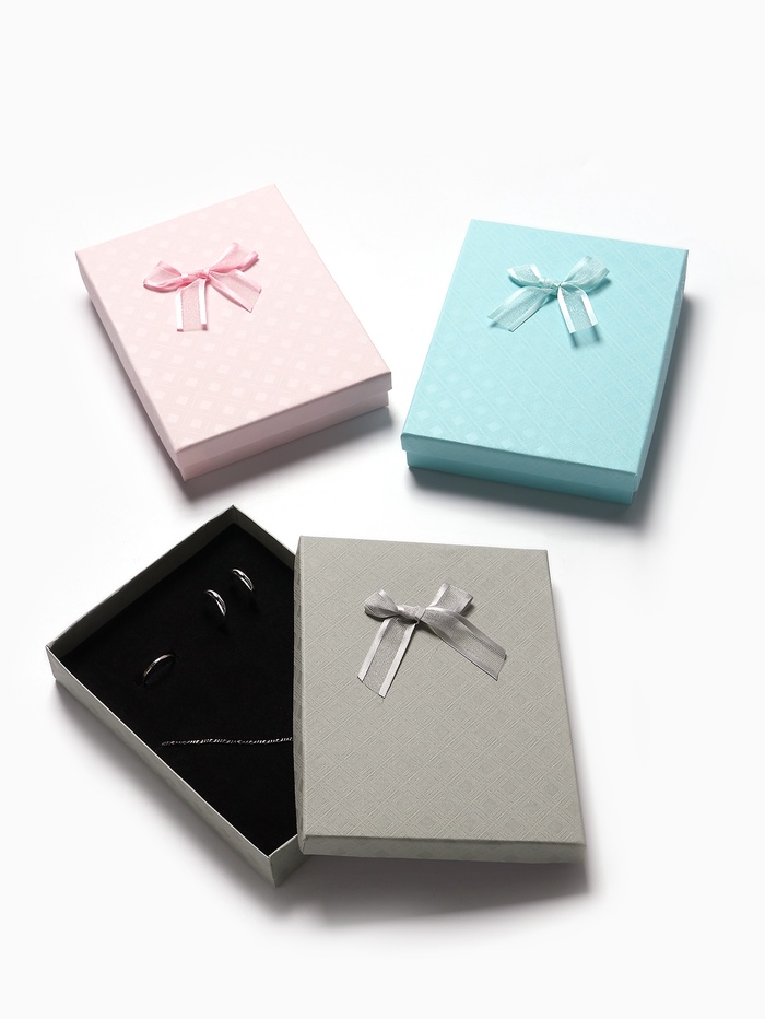 С нашими прекрасными коробочками любой подарок станет еще лучше и ярче. Футляр выполнен из прочного плотного картона. Оптимальный размер коробки 12,5*16,5см позволяет разместить разнообразные виды ювелирных изделий – от сережек до колье. Внутри каждой коробочки с крышкой есть чёрная бархатная подложка. С помощью специальных прорезей на подушечке можно аккуратно разместить и зафиксировать цепочки, гвоздики и перстни. А если убрать подложку, упаковка подойдет даже для часов с мягким плоским ремешком или на цепи.