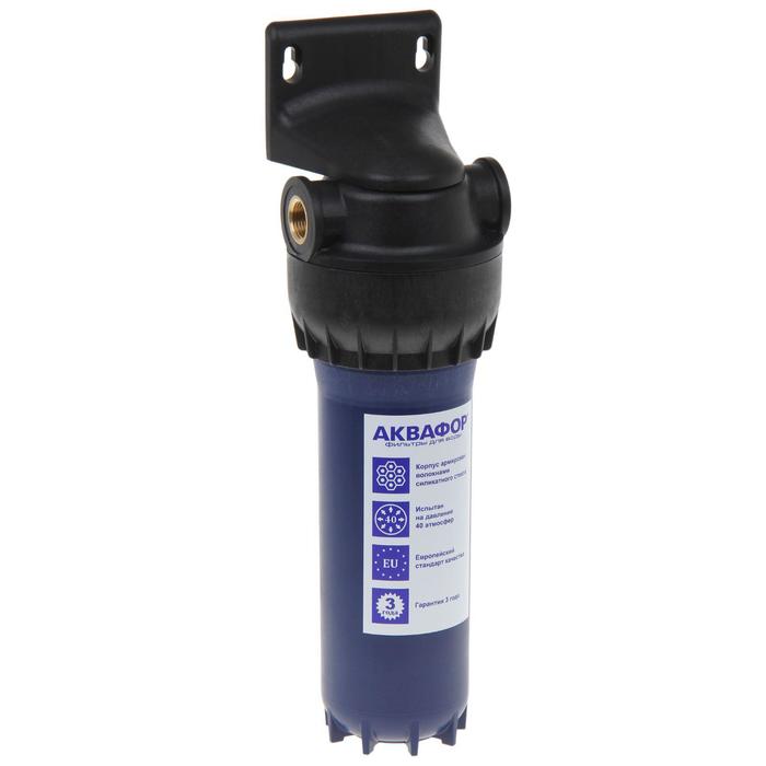 Корпус предназначен для сменных фильтрующих элементов. Такая конструкция очищает холодную воду от песка, ржавчины и других механических примесей, а также защищает бытовую технику от поломок.
