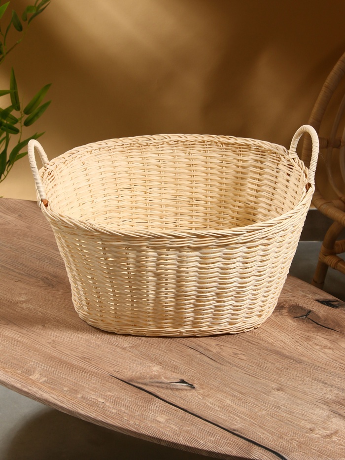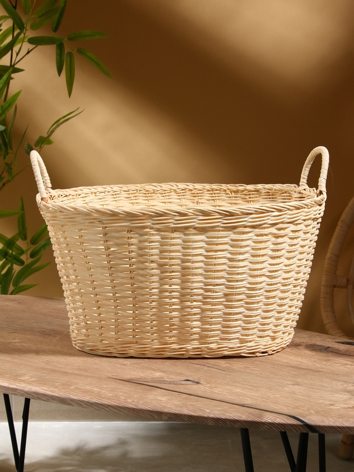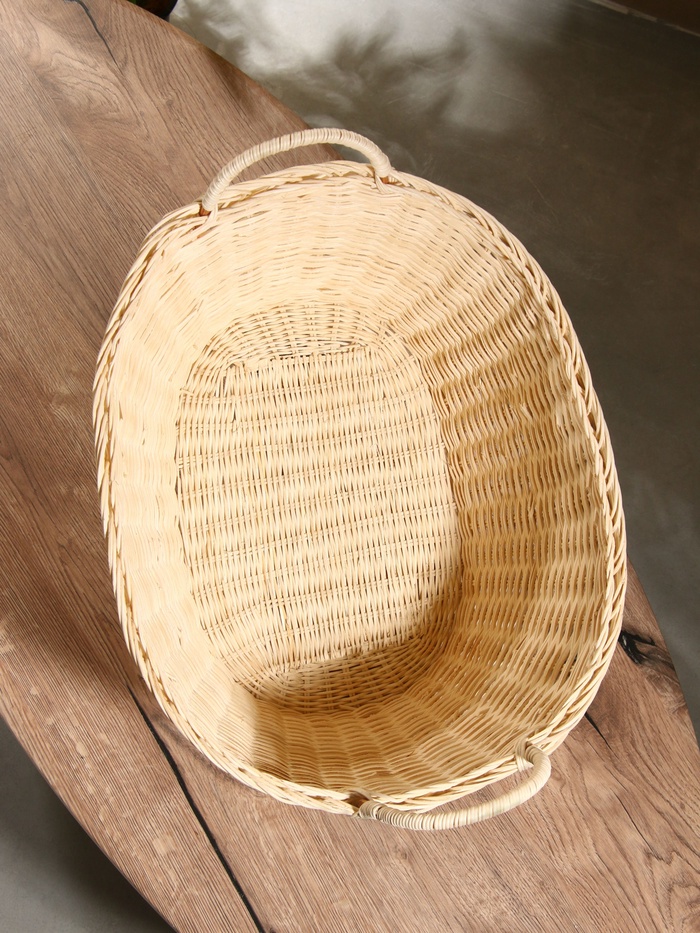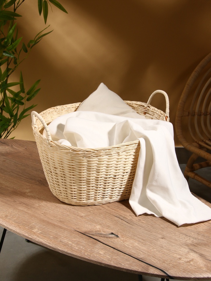 - Эстетичный дизайн: изготовленная из натурального ротанга, корзина обладает естественным бежевым оттенком, который прекрасно сочетается с различными цветовыми схемами интерьера. Овальная форма делает ее компактной и вместительной одновременно.
