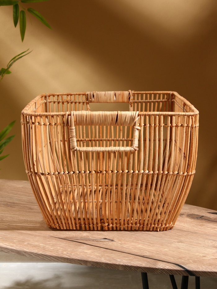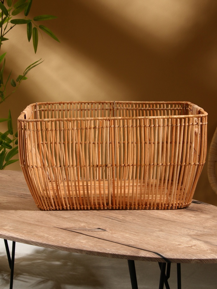 Ваш помощник в наведении порядка и уюта! Прямоугольная корзина для белья из натурального ротанга – практичное решение для аккуратного хранения одежды.