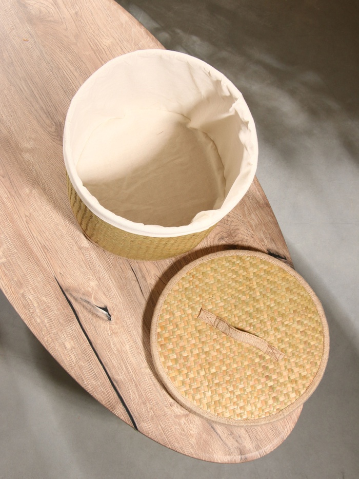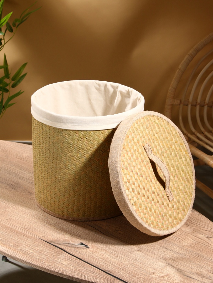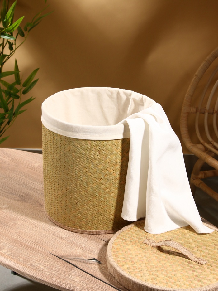 Плетёная корзина с крышкой — стильное и практичное решение для хранения белья. Натуральный ротанг обеспечивает прочность и долговечность, а тканевый подклад защищает вещи от пыли. Компактный размер подходит даже для небольших помещений, сохраняя порядок в ванной или гардеробной.