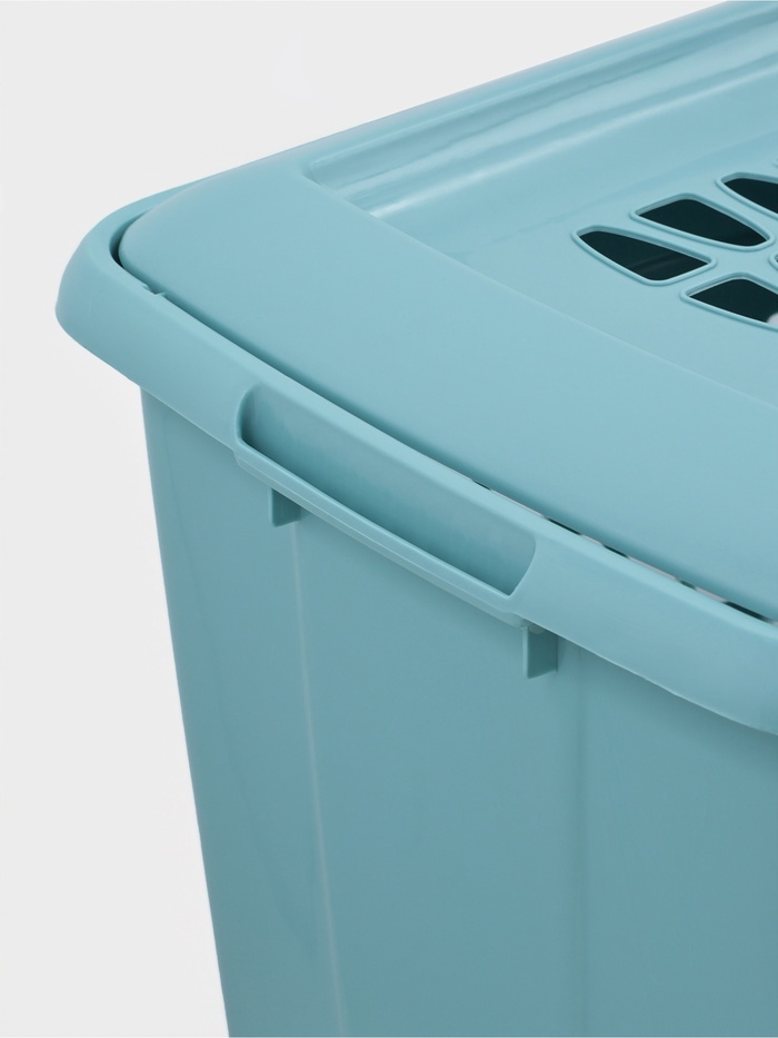 Корзина для белья с крышкой «Молетта», 60 л, 47.9×36.9×55 см, прямоугольная, бирюзовая