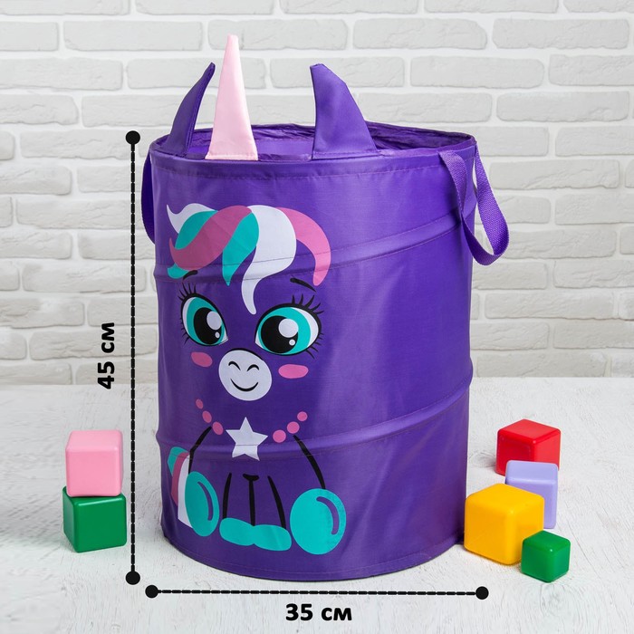 Корзина для хранения игрушек «Единорог» станет стильным и функциональным решением для детской комнаты. Её яркий и красочный дизайн впишется в любой интерьер, а практичная конструкция упрощает организацию пространства. Теперь у игрушек будет своё место, а порядок станет приятным и лёгким делом.