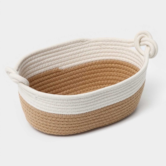 Корзина для хранения LaDо́m «Вега», плетёная, ручной работы, с ручками, хлопок, 33×22×13 см, бежевая
