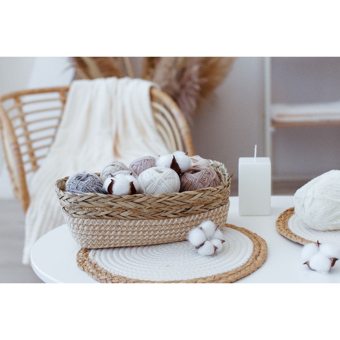 - В корзинке можно компактно и эстетично разместить пряжу и другие принадлежности для рукоделия, вязания, шитья, швейные инструменты и нитки, а также разнообразные ткани и материалы для творчества.
