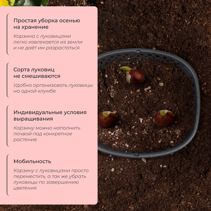- ёмкость станет препятствием для проголодавшихся грызунов и убережёт луковицы от повреждений.