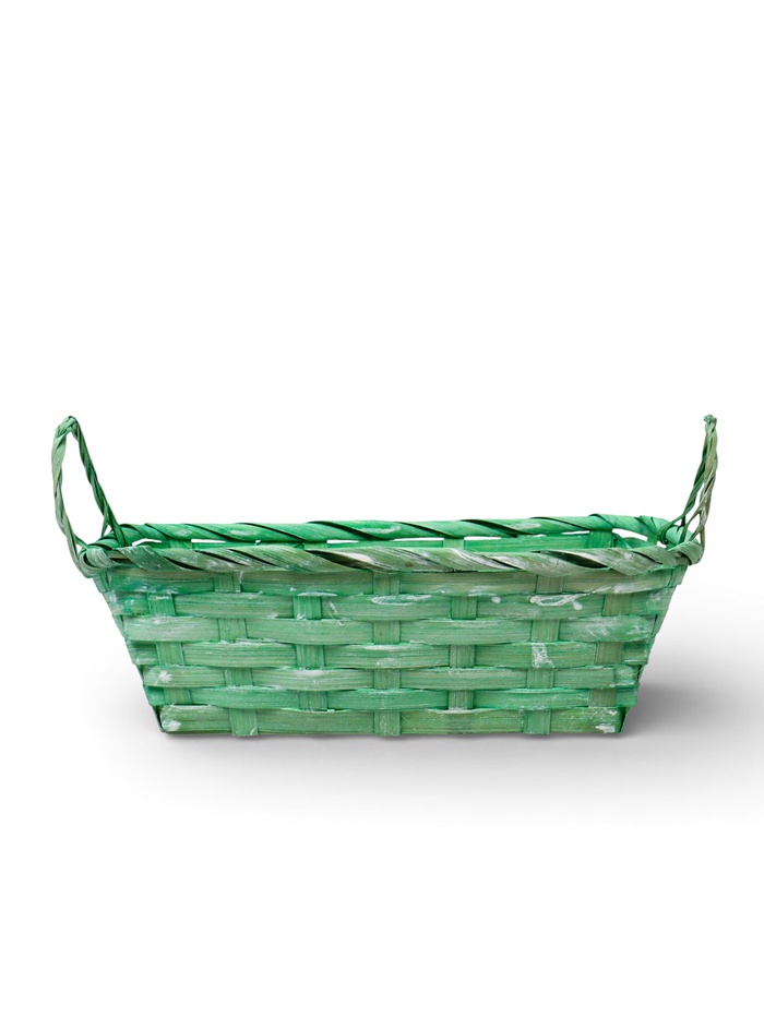 Корзина плетеная 24 х 20 х 8 см,боковые ручки, зеленый квадрат