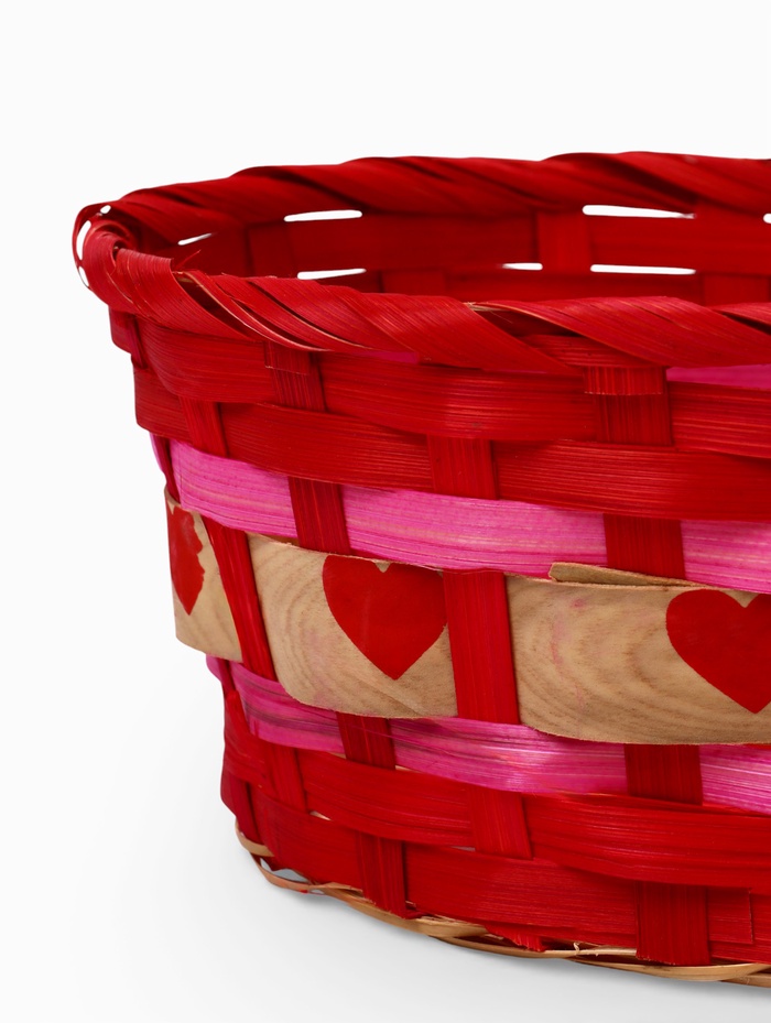 Корзина плетеная 25 х 20 х 10 см, без ручек розовый с сердечками