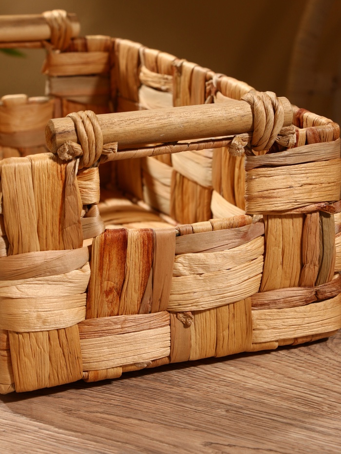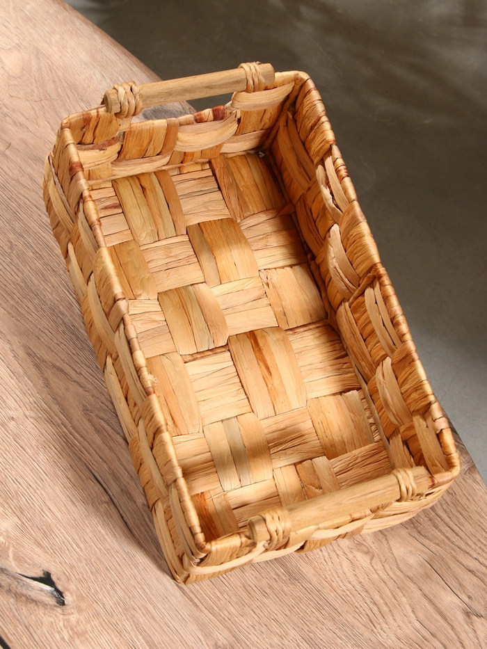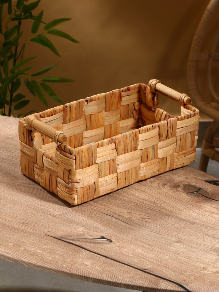 - Натуральные материалы: корзина изготовлена из водного гиацинта. Экологически чистый материал добавляет изысканности и тепла любому интерьеру, подчеркивая заботу о природе.