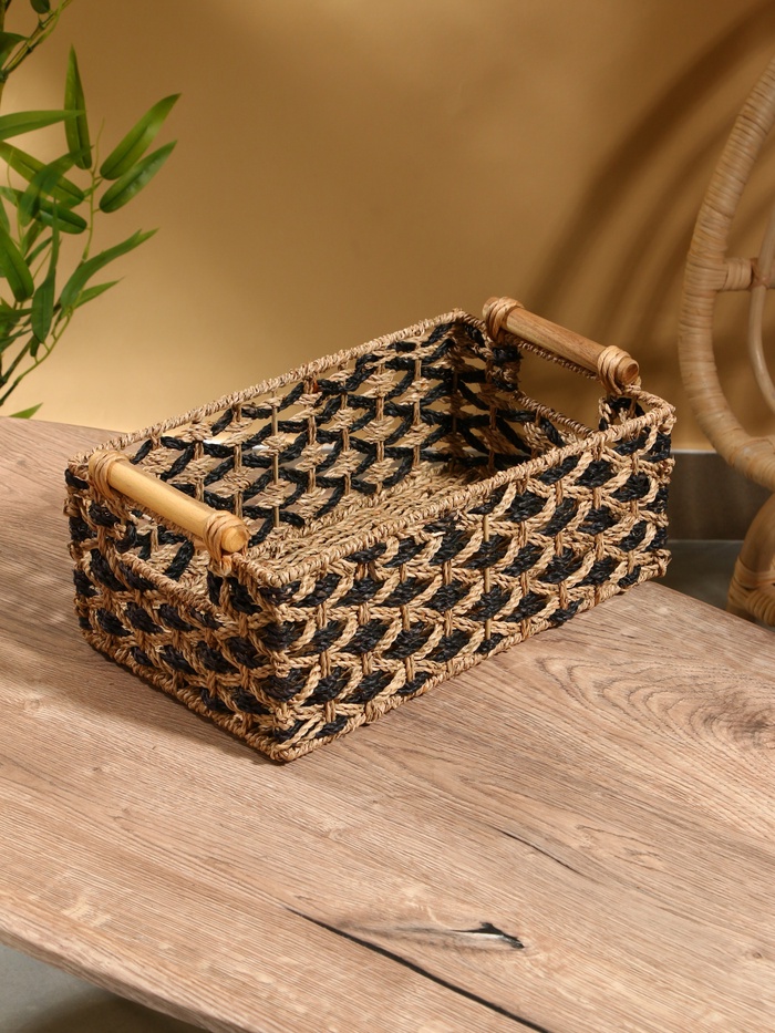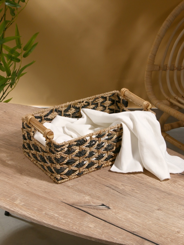 Плетёная корзина из натуральных водорослей — стильное и экологичное решение для хранения вещей. Благодаря прочному плетению она выдерживает нагрузки, сохраняя форму. Подходит для организации пространства в комнате, ванной или на кухне. Лёгкая, но вместительная.