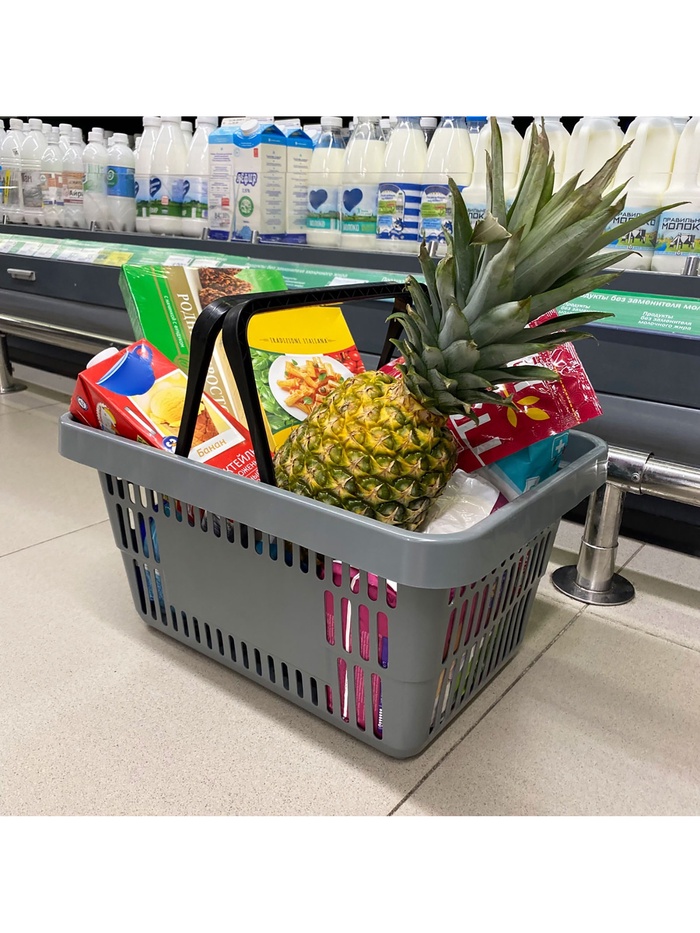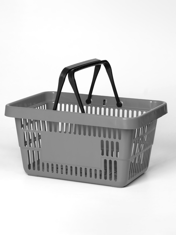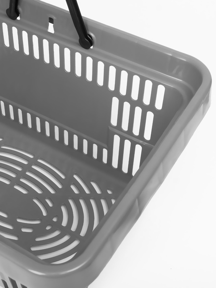 Корзина оснащена двумя ручками для переноса. Лёгкая, но в то же время прочная базовая модель изготовлена из ударопрочного пластика. Имеет мелкую перфорацию корпуса, чтобы небольшие товары не выпадали. Корзины легко штабелируются, благодаря чему их удобно хранить.