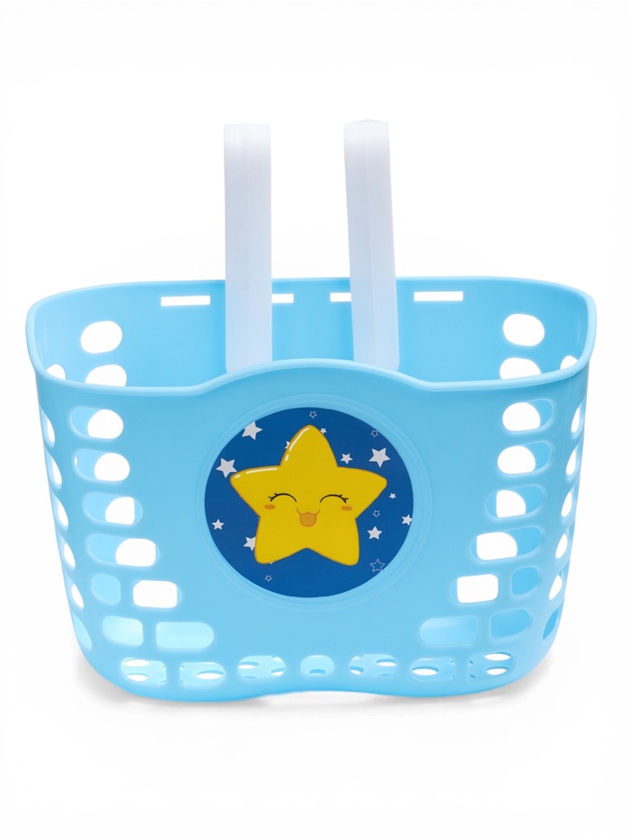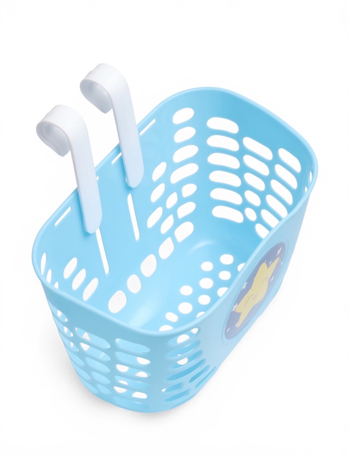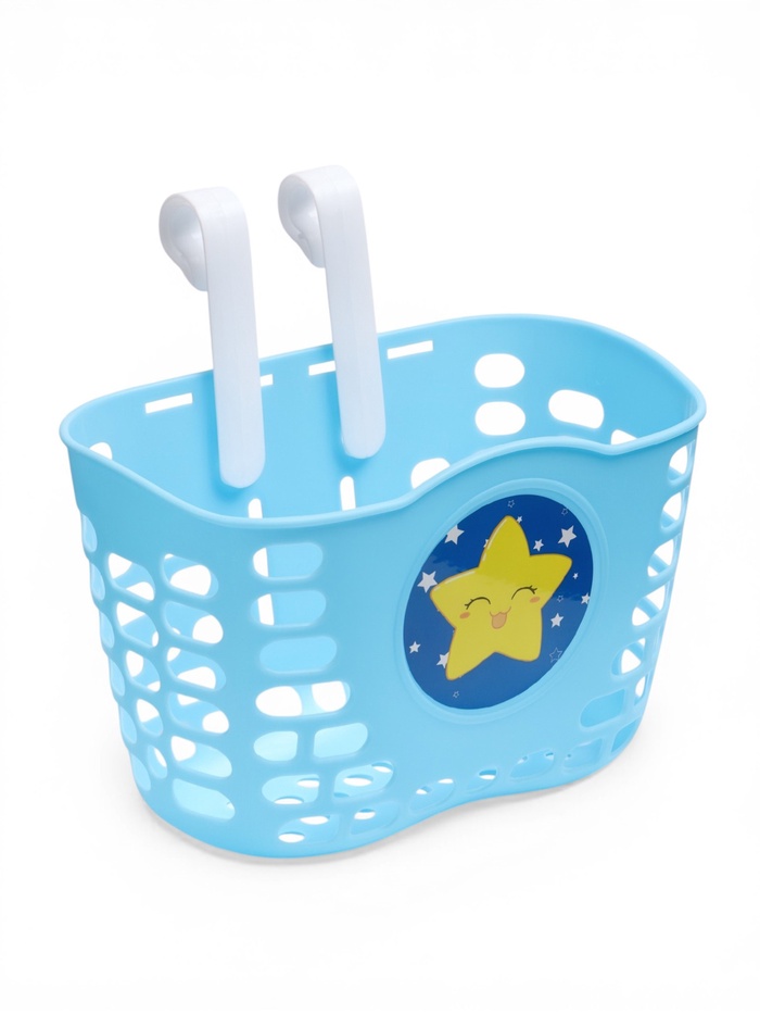 Корзина выполнена из пластика, имеет достаточно жёсткий и прочный каркас. Устанавливается на руль с помощью пластиковых кронштейнах.