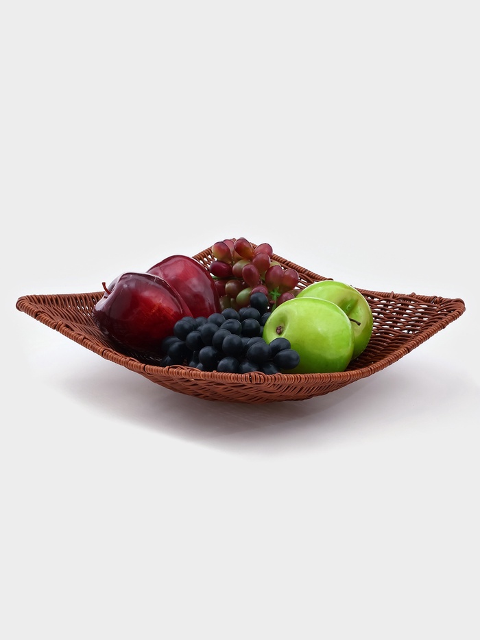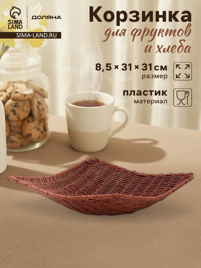 Корзинка для фруктов и хлеба Доляна «Огайо», 31×31×8.5 см, квадратная, пластик, плетёная, коричневая