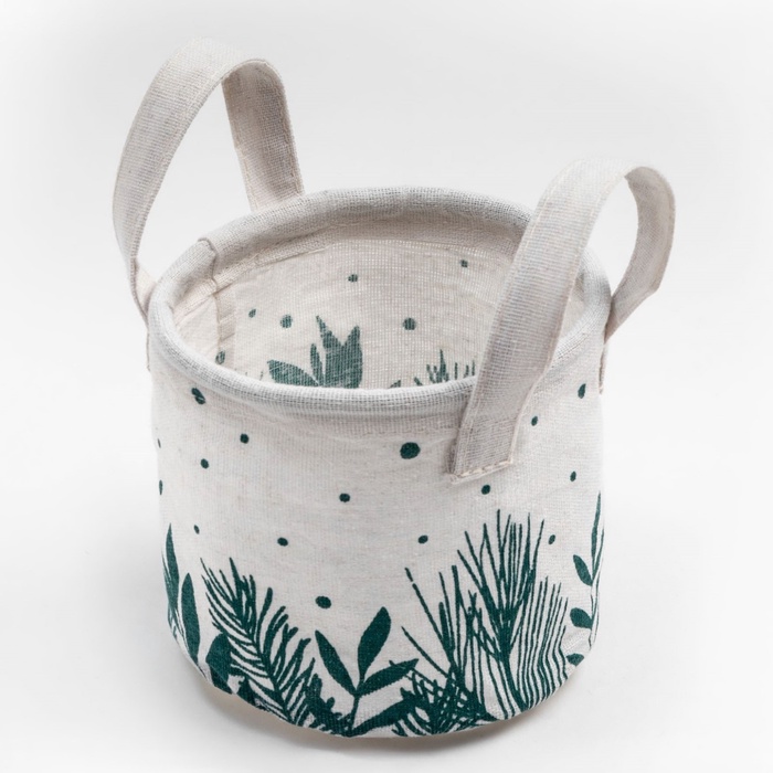 Эта текстильная корзинка с новогодним дизайном выполнена из гладкого материала — хлопка и полиэстера, что обеспечивает ей прочность и приятную текстуру. Размер 12×14 см делает ее удобной для хранения различных мелочей, таких как украшения, канцелярия или подарочные сувениры. В изделии отсутствуют декоративные элементы, что придает ей универсальность и позволяет легко сочетать с любым интерьером. Цветовая гамма — белый и зеленый — создает свежий и праздничный образ, идеально подходящий для зимних праздников. Тематика Нового года делает корзинку особенно актуальной в сезон зимних торжеств, а возможность использования в любое время года — весной, летом, осенью или зимой — расширяет ее функциональность.