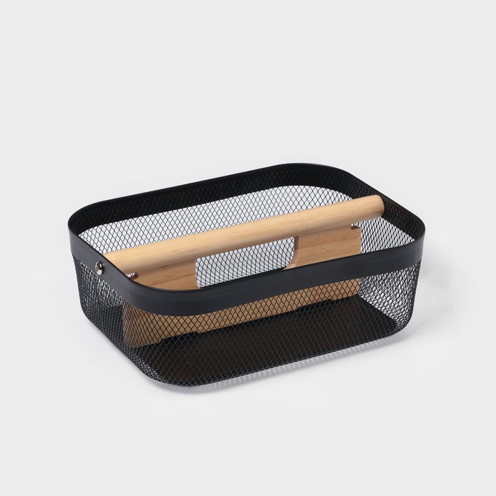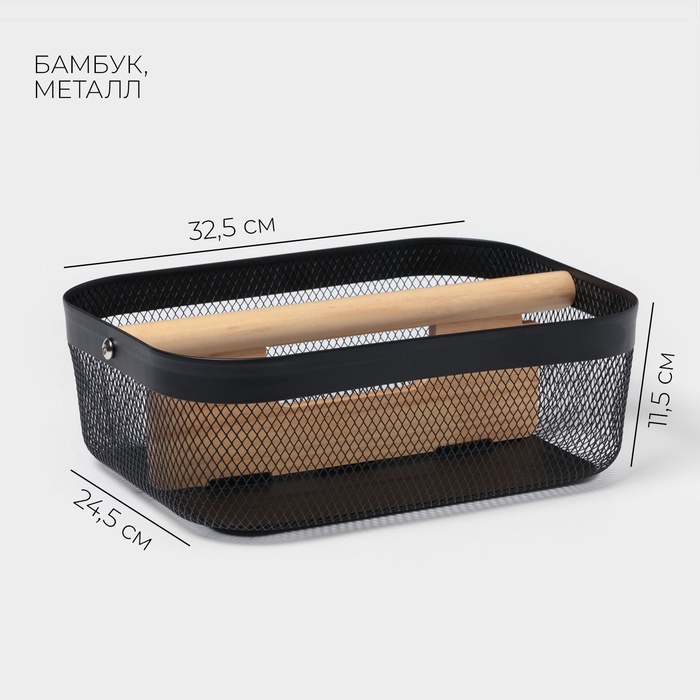 Корзинка изготовлена из качественного металла, что обеспечивает ей невероятную прочность и долговечность. Прямоугольная форма и одно отделение позволяют эффективно использовать пространство, а минималистичный дизайн позволит ей гармонично вписаться в любой уголок вашего дома.