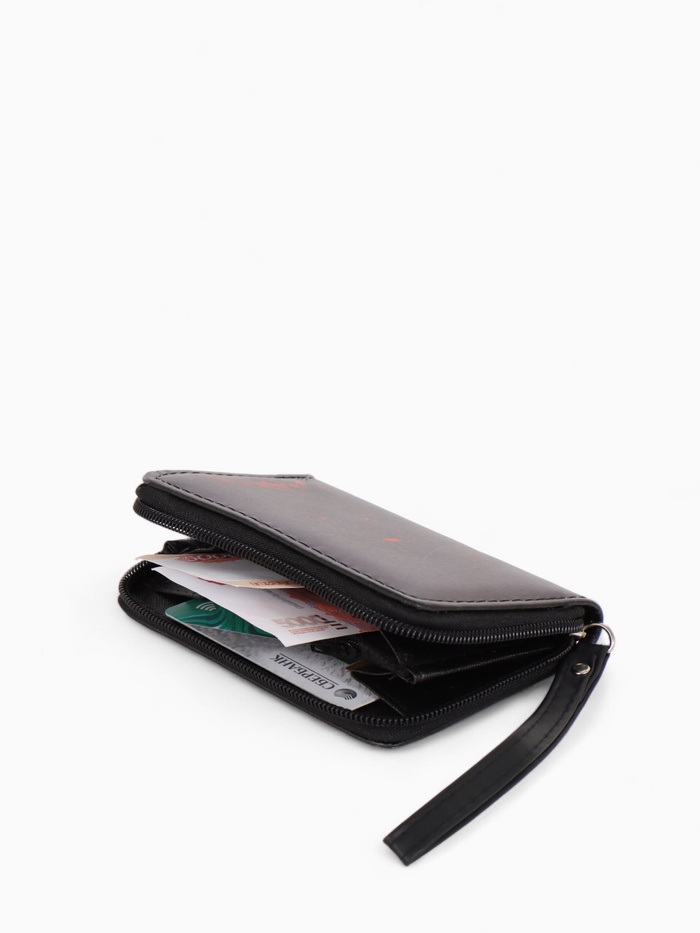 Кошелек дет 07-01-01 Июнь2529 волк, 12*1,5*9 см, 2 отд+отд/молн, д/карт, черный