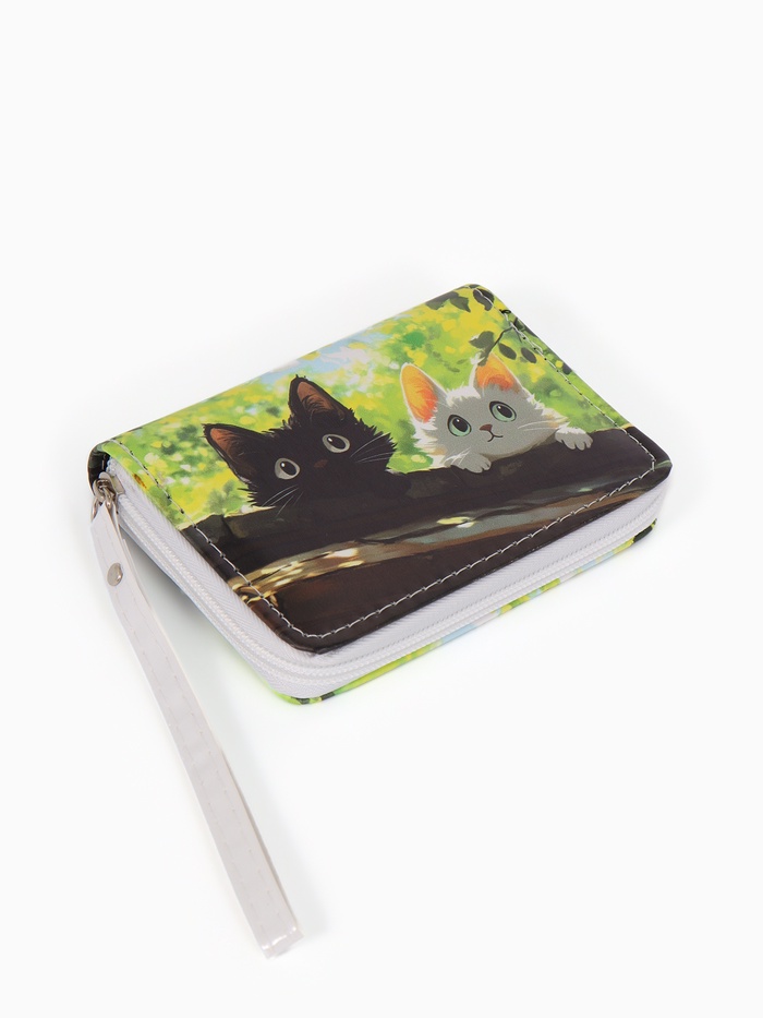 Кошелек дет 07-01-01 Июнь2533 кот, 12*1,5*9 см, 2 отд+отд/молн, д/карт, зеленый