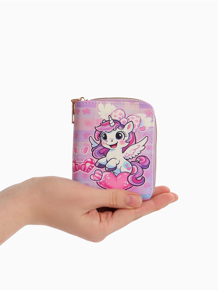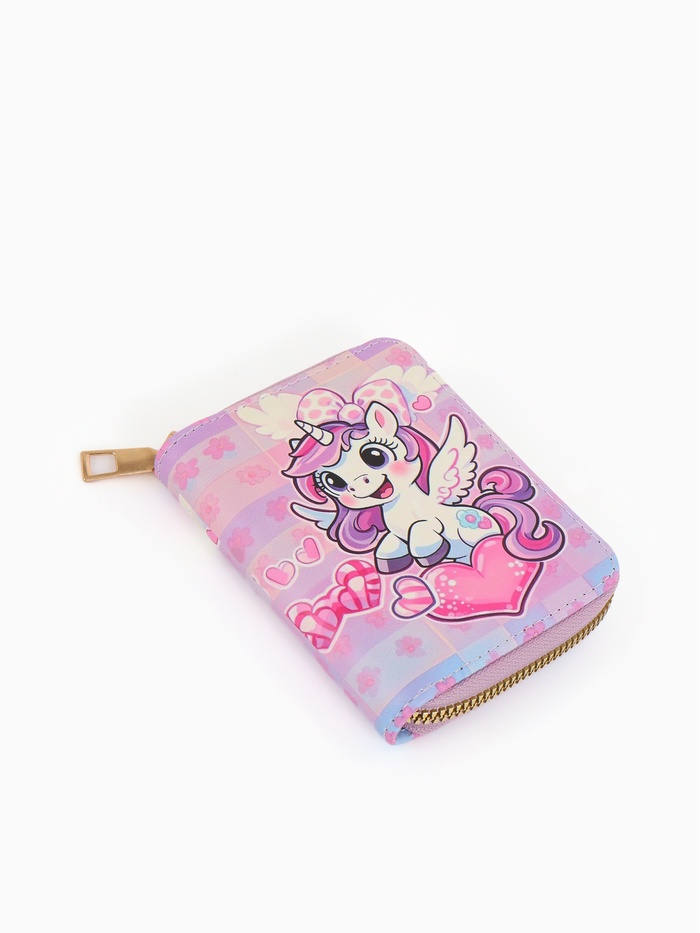 Кошелек дет 07-01-01 Июнь2549 единорог, 8,5*2,5*10,5 см, 2 отд+отд/молн, д/карт, розовый