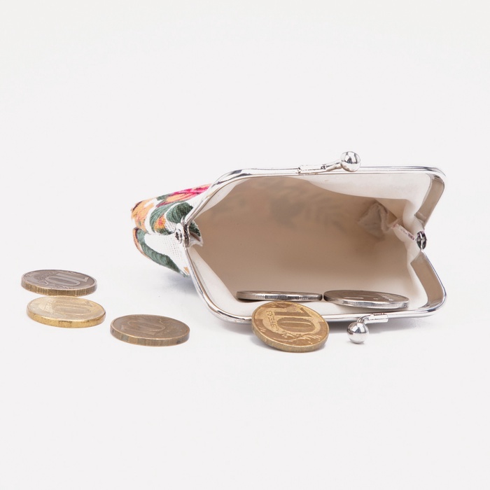 Кошелёк- монетница на фермуаре, 9×1.5×7 см, с цветочным принтом, белый
