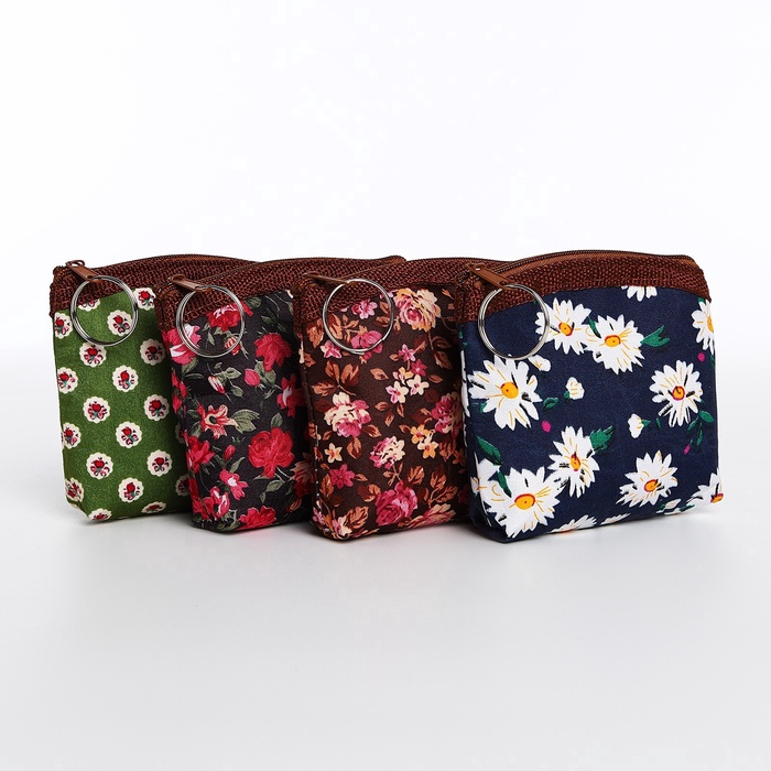 Кошелёк-монетница на молнии 10.5×1×9 см, с цветочным принтом, МИКС
