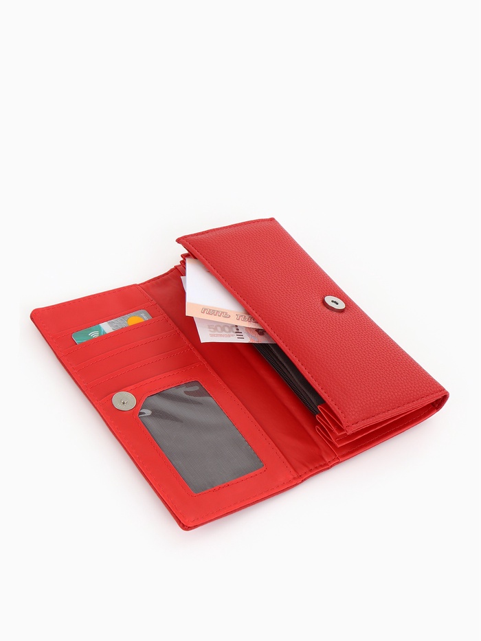 Кошелек жен 06-01-01 Июнь2522, 19*3*10 см, 3 отд+отд/молн, д/карт, д/монет, на магните красн 10909