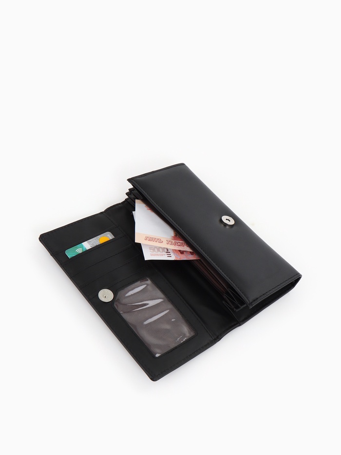 Кошелек жен 06-01-01 Июнь2523, 19*3*10 см, 3 отд+отд/молн, д/карт, д/монет, на магните черн 109097