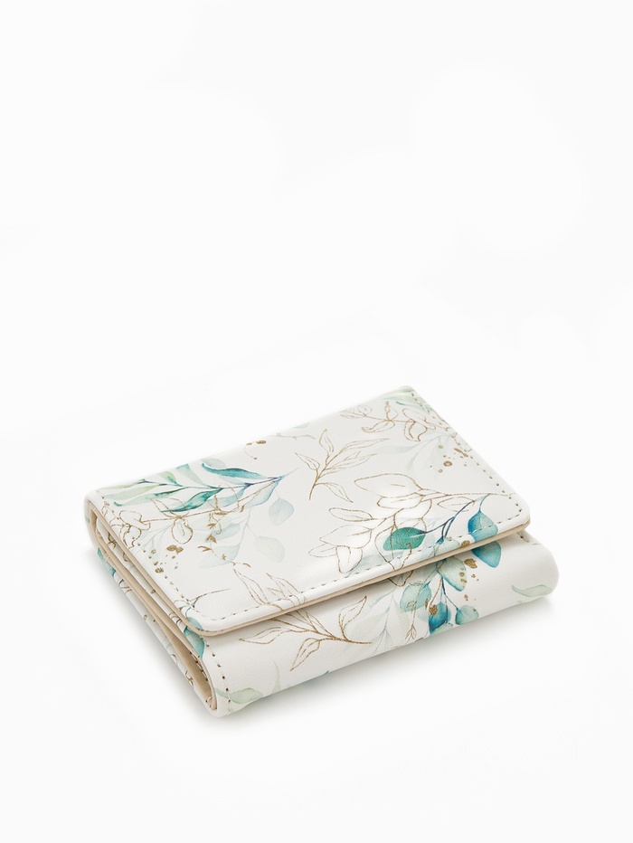 Кошелёк женский на кнопке, 10.5×2.5×8.5 см, с растительным принтом, белый/зелёный