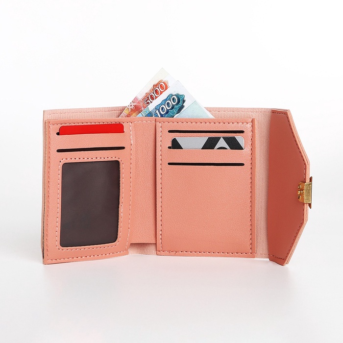 Кошелёк женский на кнопке 11×1×10 см, с золотистой фурнитурой, пудровый