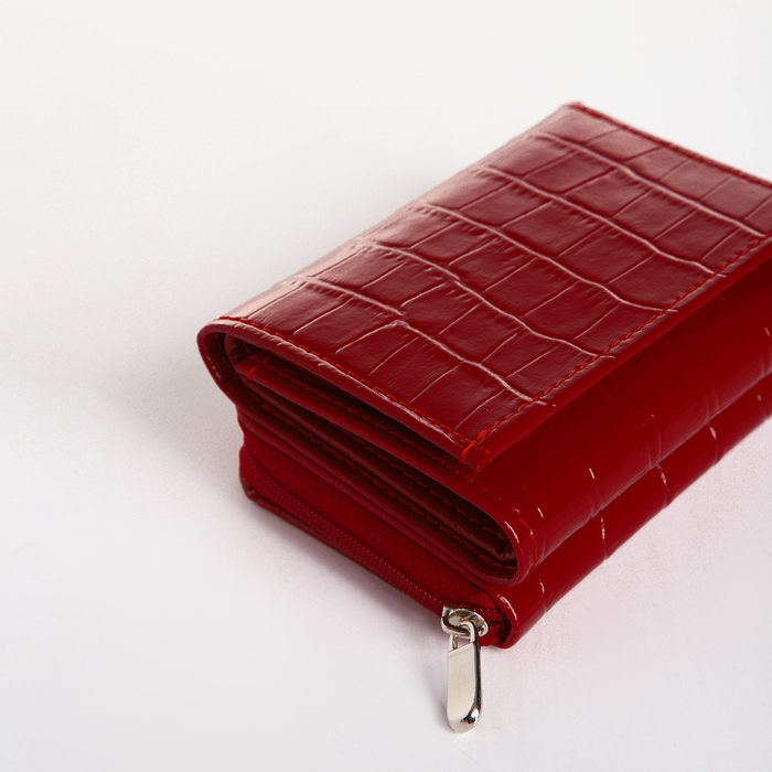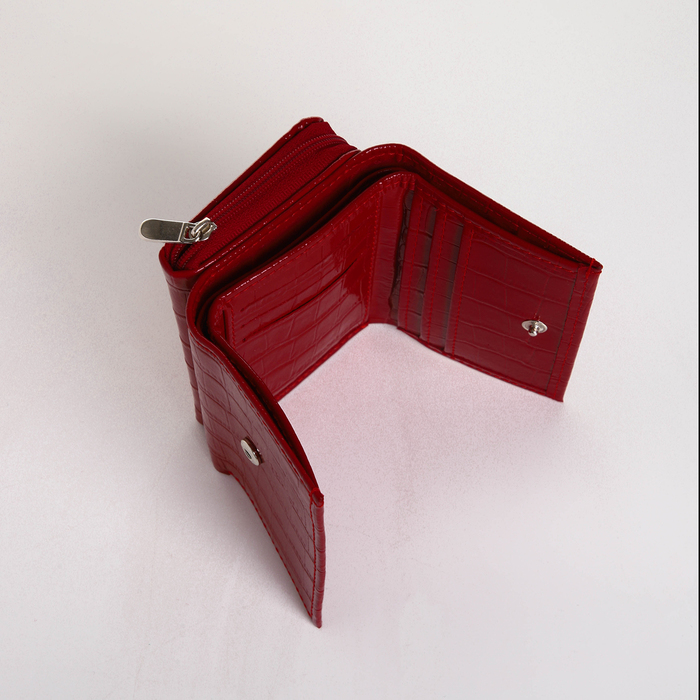Этот компактный красный кошелёк создан для тех, кто ценит практичную элегантность. Натуральная кожа с фактурой крокодила придаёт аксессуару выразительность, а насыщенный цвет становится ярким акцентом в вашем образе. Тройное сложение сохраняет его изящные пропорции, делая идеальным спутником для маленькой сумочки.