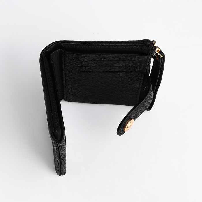Кошелёк женский на кнопке с ремешком, цвет чёрный