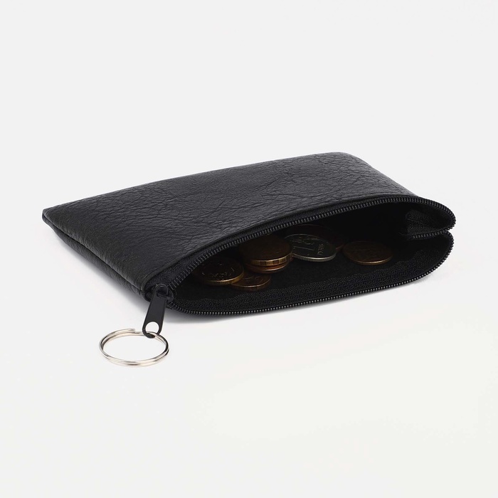 Чёрный кошелёк-монетница на молнии создаёт компактное и защищённое пространство для мелочи. Его лаконичный дизайн подходит для любого стиля, сохраняя практичность в минималистичном формате. Универсальное решение для тех, кто ценит порядок в деталях.