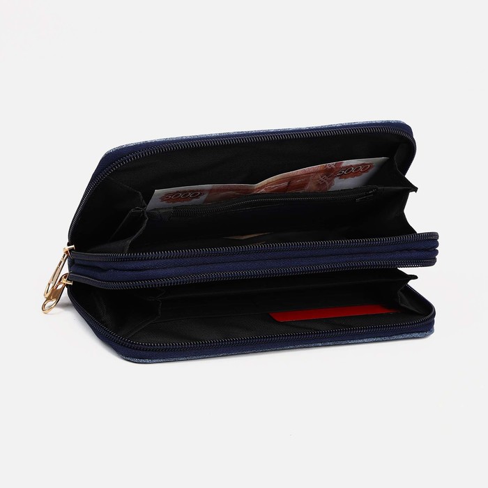 Кошелёк женский на молниях, отдел для купюр, для карт, для монет, цвет синий