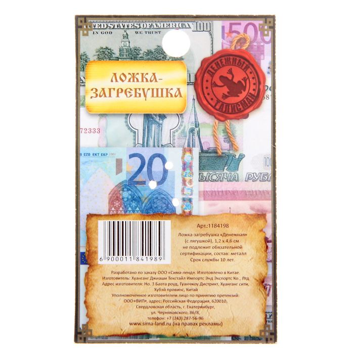 В финансовых вопросах нет незначительных деталей, поэтому специально для вас мы создали серию денежных оберегов, которые принесут благополучие. Ложка-загребушка «Денежная» с лягушкой — это талисман, который поможет сохранить и преумножить доход. Аксессуар изготовлен из металла и преподносится на эксклюзивной дизайнерской подложке. Благодаря удобному и практичному дизайну оберег можно носить в кошельке или сумочке.