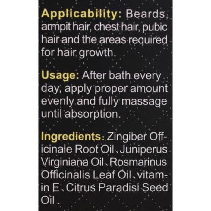 Место применения: борода, бакенбарды, волосы подмышек, волосы на груди и необходимые области для роста волос.