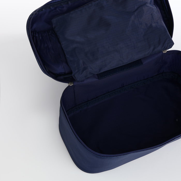 Косметичка-футляр женская с ручкой, объёмная, маленькая, для косметики, лекарств, прокладок, голубая