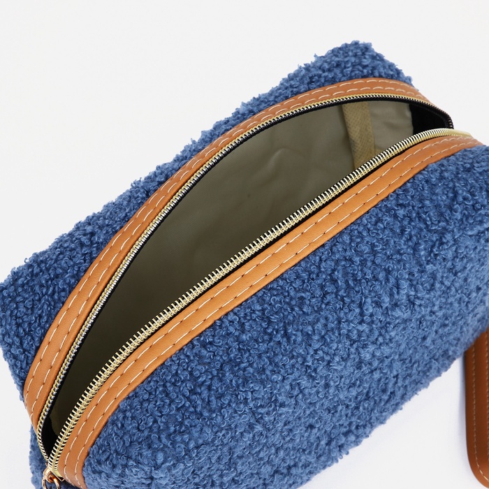 Косметичка дорожная на молнии, объёмная, средний размер, с ручкой, синяя