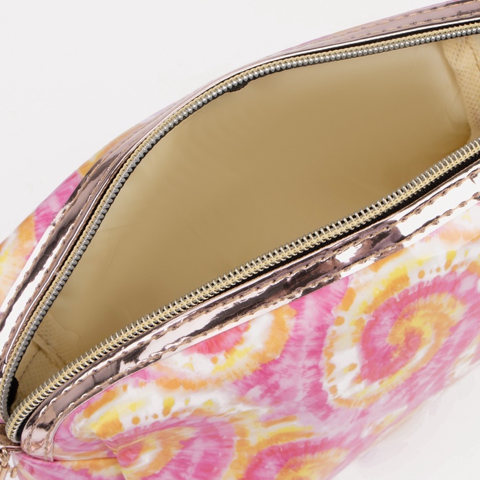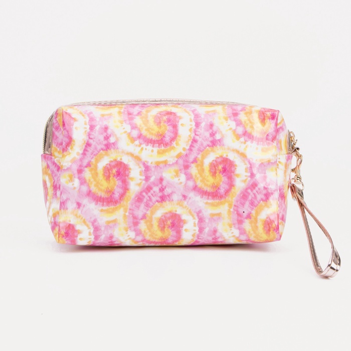 Косметичка дорожная на молнии, с ручкой, с принтом, розовая/разноцветная