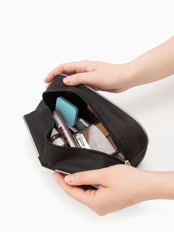Косметичка на молнии дорожная, мужская, с ручкой, средний размер, чёрная/серая