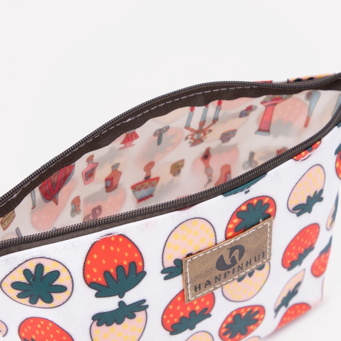 Косметичка на молнии женская, с цветным подкладом, с принтом, белая/разноцветная