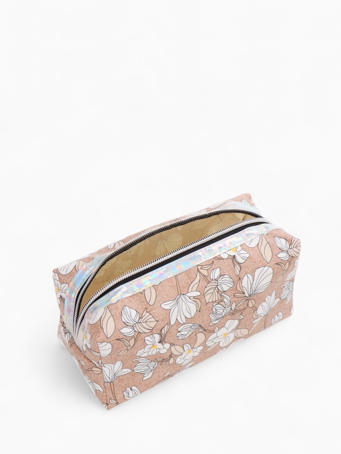 Косметичка на молнии женская, с рисунком, с рисунком, пастельно-коричневая