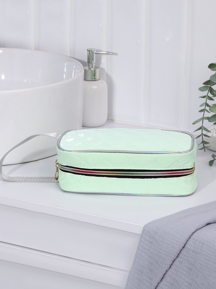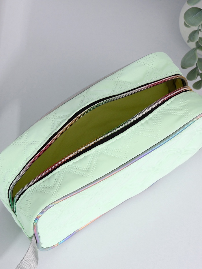 Косметичка на молнии женская, с ручкой, маленькая, светло-зелёная