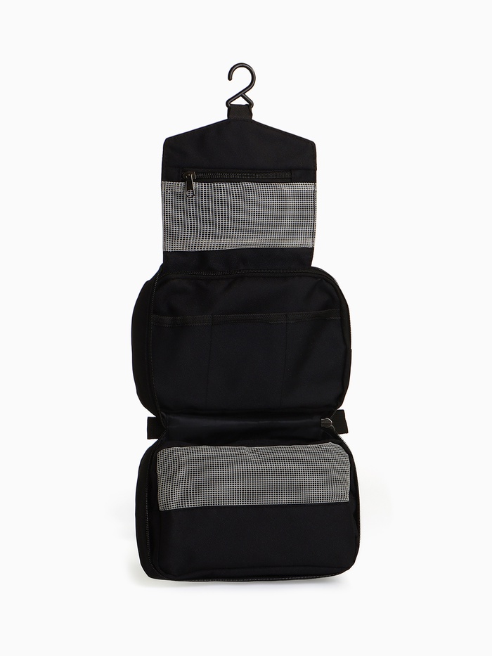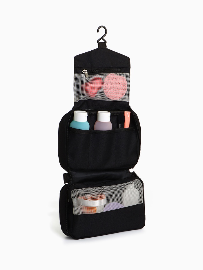 Косметичка-несессер дорожная на молнии, с ручкой, с крючком, чёрная