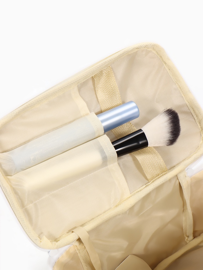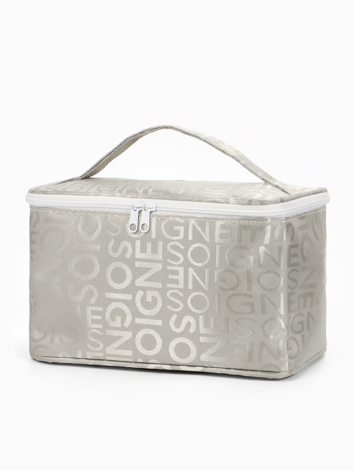 Косметичка-сундучок на молнии, на подкладке, с ручкой, зеркалом, с буквами, серая
