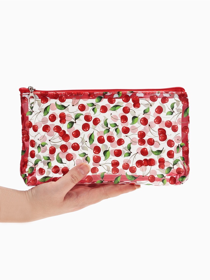 - Яркий ягодный принт акцентирует внимание на вашей косметичке, выделяя её среди остальных.